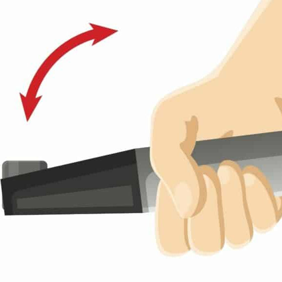 Pull the pin. Hold the extinguisher with the nozzle pointing away from you and release the locking mechanism.